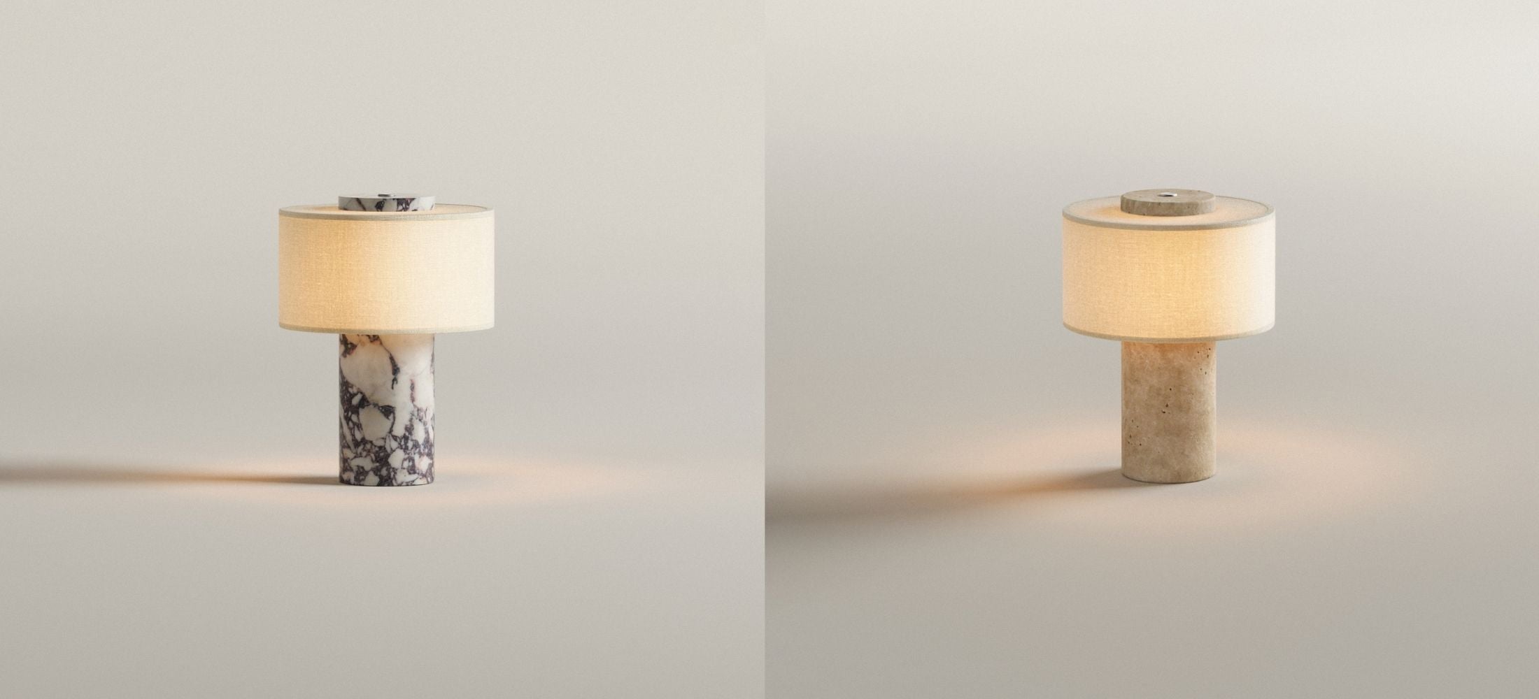 Auríe Portable Lamp | Travertin & Hør | 25 cm